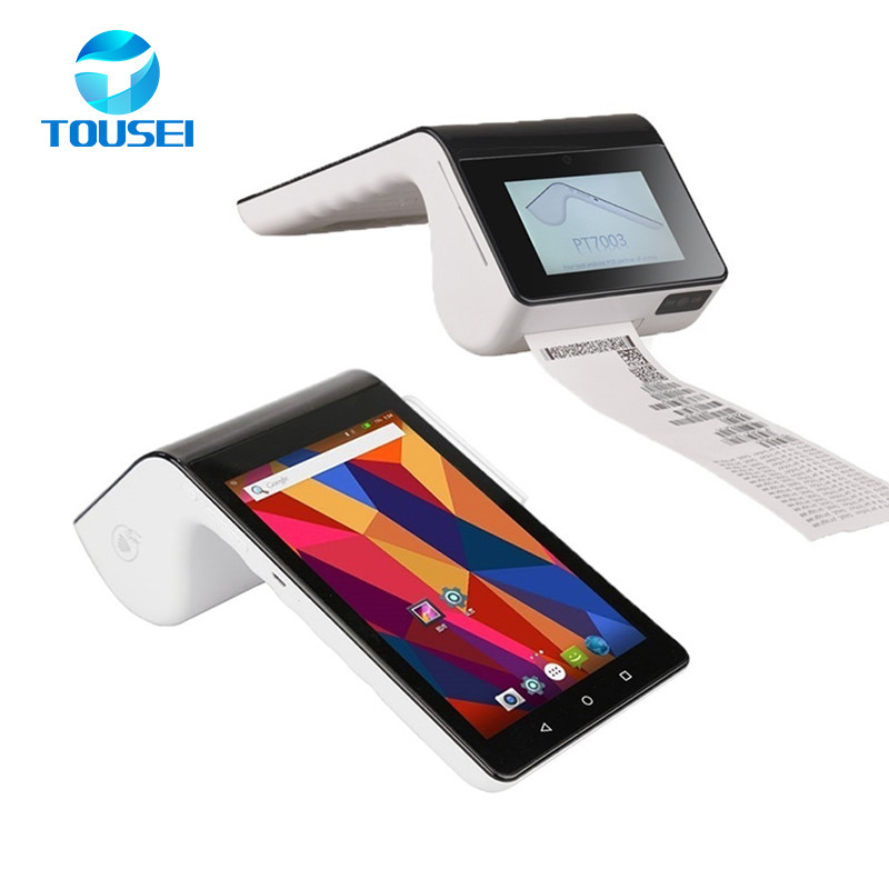 Terminal de POS móvil: Android 7+1G+8G+7" pantalla principal táctil + 3,5" pantalla + impresora de 58 mm + tarjeta NFC + IC + cámara + 4G + WIFI + BT; MSR, escáner, 2G + 16G son opcionales.